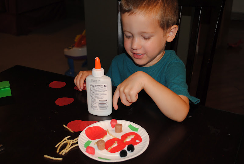 One of our crafts this week was to make a pizza. Here are the boys hard at work...